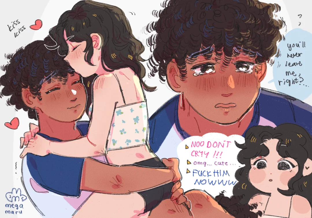 1boy1boy1girl1g1girlscomfortingcryingcrying malecrying with eyes openfemaleFlag for Deletionintimacykissingmalemega88maruworried expressionworried faceworried for otherworried look