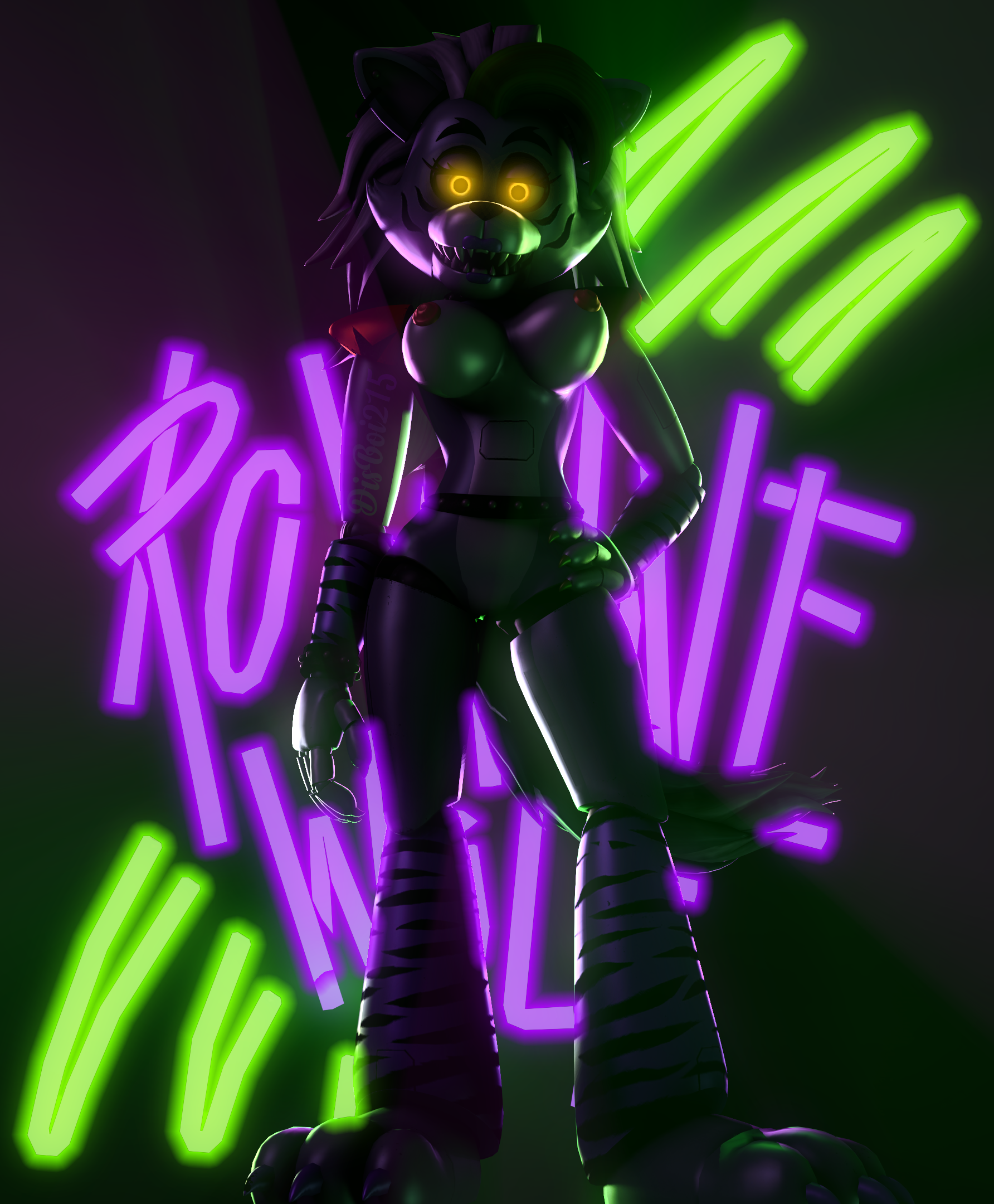 animatronicbedroom eyesclawsdisboi215facepaintfemaleFlag for Deletionfnafglowing eyesgreen clawsgreen hairgrey bodygrey hairhand on hiphourglass figurelipsticklooking at viewerlooking downlooking down at viewerneonneon lightspink nipplespurple lipstickred shoulder padsrobotsharp clawssharp teethshiny bodyshoulder padssilver bodysilver hairsolowolfwolf earswolf girlwolf tailyellow eyes
