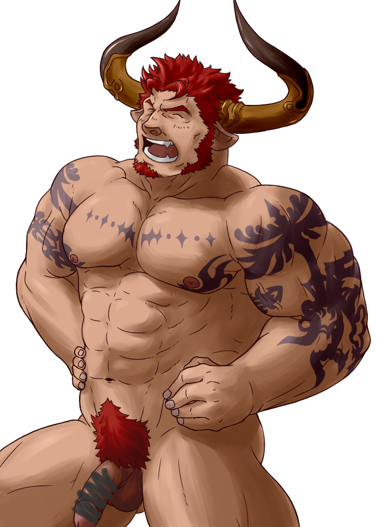 1boyabsagierubabarablushfacial hairfangsFlag for Deletionhornsmalemale onlymusclemusclesopen mouthpecspenispubic hairred hairshort hairsideburnssolotattootonguetongue out