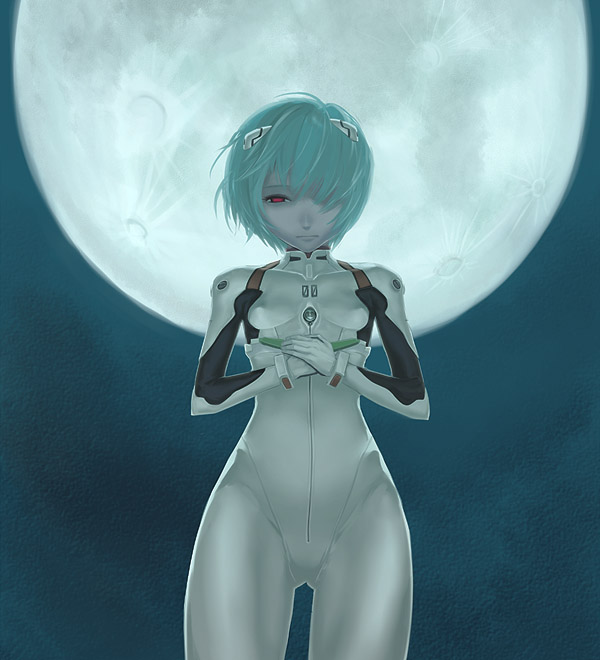 blue hairinterface headset (evangelion)mecha pilot suitmoonpale skinplugsuit (evangelion)red eyesshort hairsolo