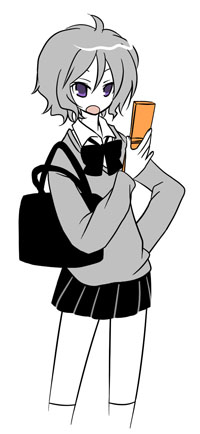 1boybagbowcellphonecrossdressingcrossdressing (mtf)dressmale focusmonochromephonepinafore dresspurple eyesschool uniformshort hairsimple backgroundskirtsleevelesssleeveless dresssolospot colortrapwhite background