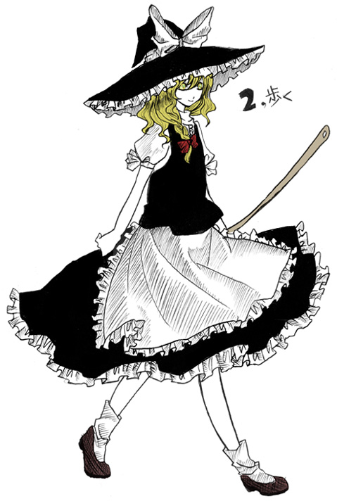1girlblonde hairclosed eyesfemale focusfull bodyhair ribbonhatribbonsimple backgroundsolowalkingwitchwitch hat