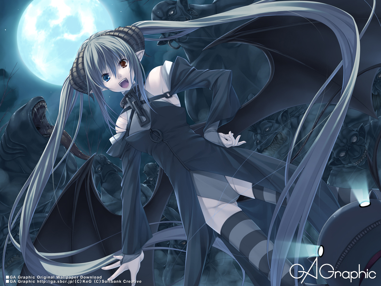 1girlbdsmbondageboundchaincollardemon girlfemale focusheterochromialong hairmonstermoonnightopen mouthpointy earssolothighhighstwintails