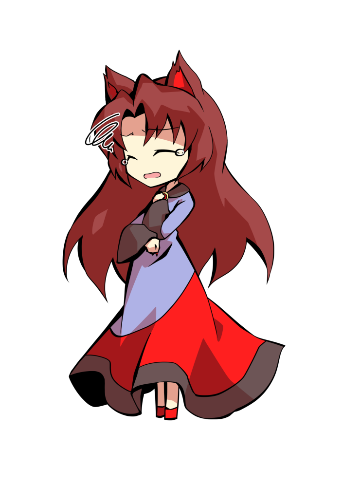 :d1boy1girlanimal earsblack dressbootsbrown hairclosed eyesdeformeddressfacing aheadfull bodyhands uplong dresslong hairmulticolored dressopen mouthred bootsred broochred dresssimple backgroundsmilesolospiralstandingtachi-etearing uptransparent backgroundwhite dresswolf earswolf girl