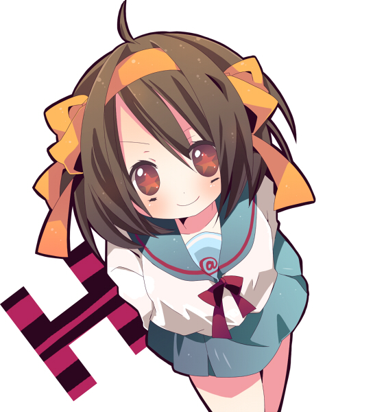 00s1girlahogeblushbowbrown hairfemale focushairbandlong sleevespleated skirtschool uniformserafukushort hairsimple backgroundskirtsolo