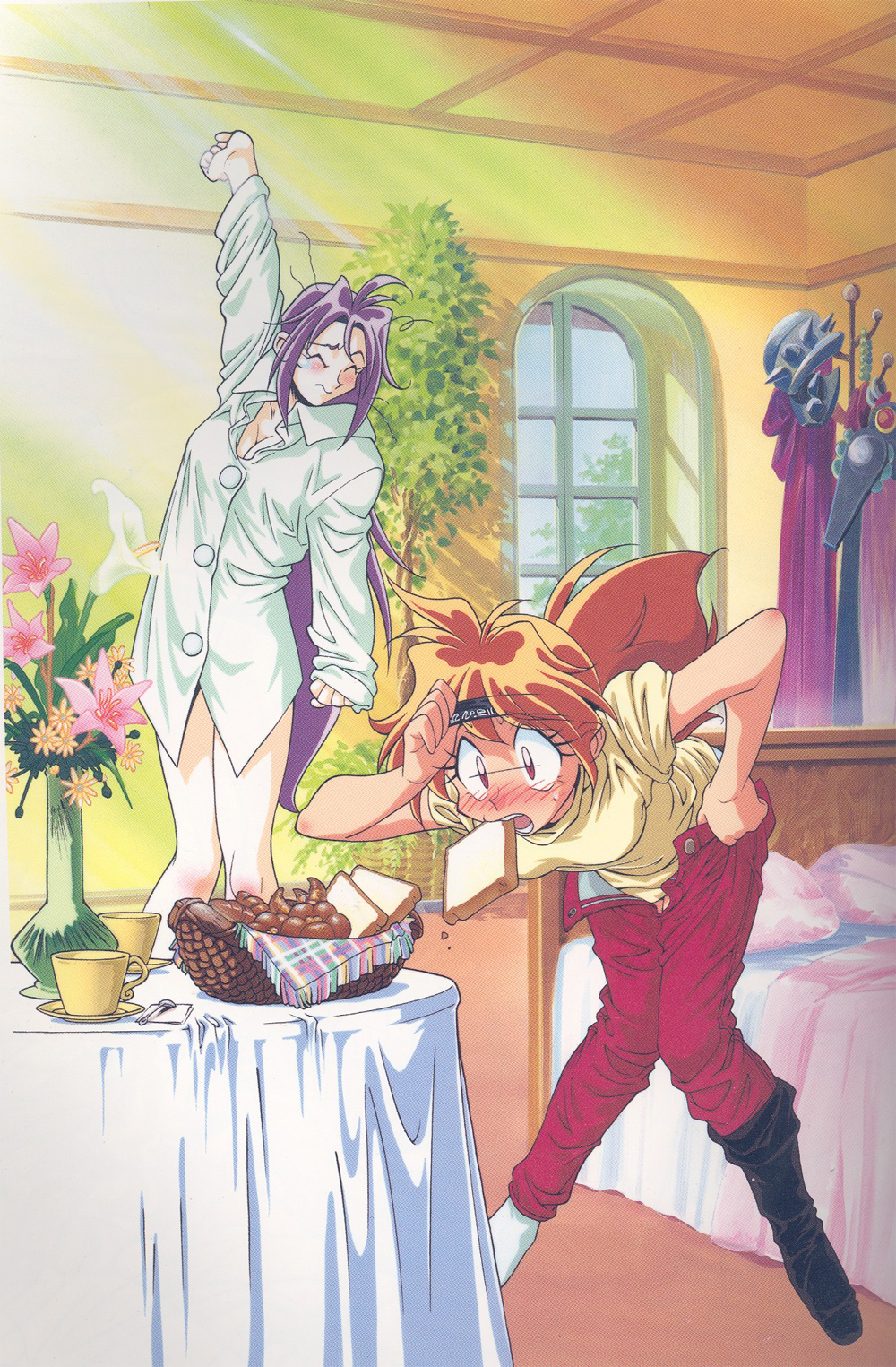 1990s (style)2girlsbedblushbootsbread slicebreakfastclothes pulldressingflowerfoodfood in mouthknee bootslight raysmorningmouth holdmultiple girlsnaked shirtpantspants pullpulling own clothesretro artstyleshirtshoessingle shoestretchingsunbeamsunlighttearstoasttoast in mouth