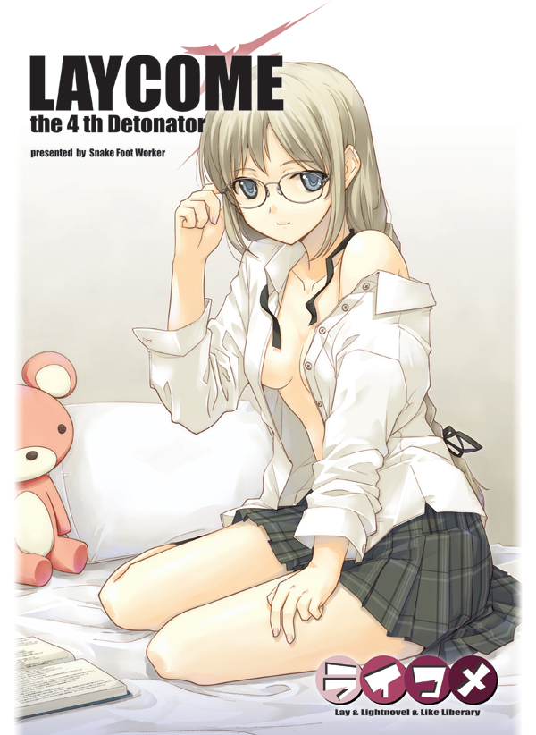 adjusting eyewearglassesno braoff shoulderopen clothesopen shirtplaid clothesplaid skirtschool uniformserafukushirtsittingskirtsolo