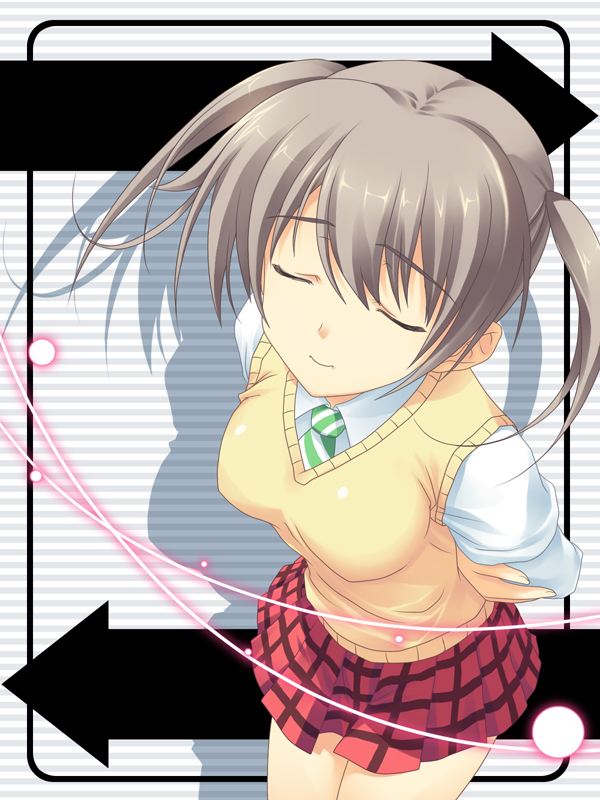 00salternate breast size (larger)closed eyesgreen necktienecktieplaid clothesplaid skirtshort twintailsskirtsolostriped necktiesweatertwintails