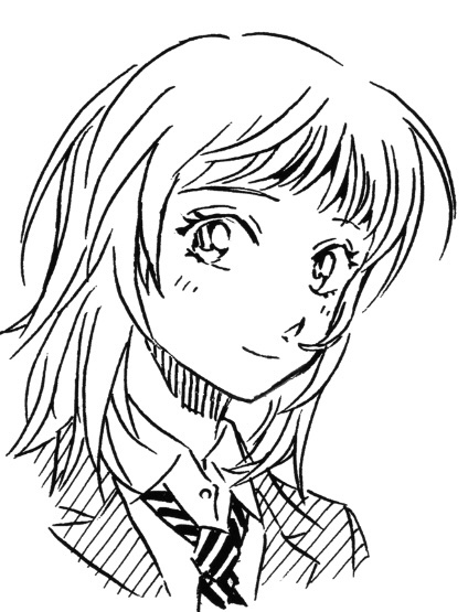 1girlblushclosed mouthjacketlong hairlooking at viewermonochromenecktieschool uniformshirtsimple backgroundsmilesolozooming in
