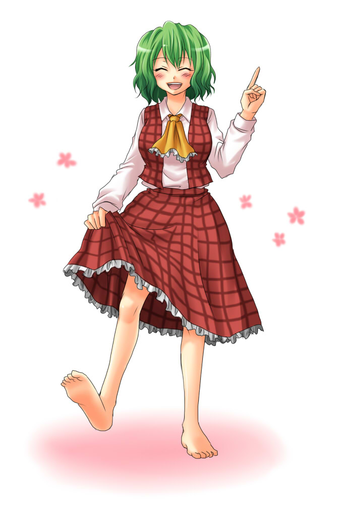 :d1boy1girlascotbarefootclosed eyesclothes liftfeetfemale focusgreen hairopen mouthplaid clothesplaid skirtplaid vestshort hairskirtskirt holdskirt liftskirt setsmilesolovest