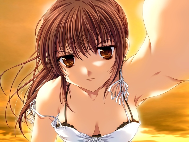 artoria pendragon (fate), saber (fate), yumizuka satsuki, fate/stay night, fate (series), tsukihime, 00s, 2girls, ahoge, armor, blonde hair, brown eyes, brown hair, crossover, dress, gauntlets, multiple girls, school uniform, short hair, skirt, twintails, two side up