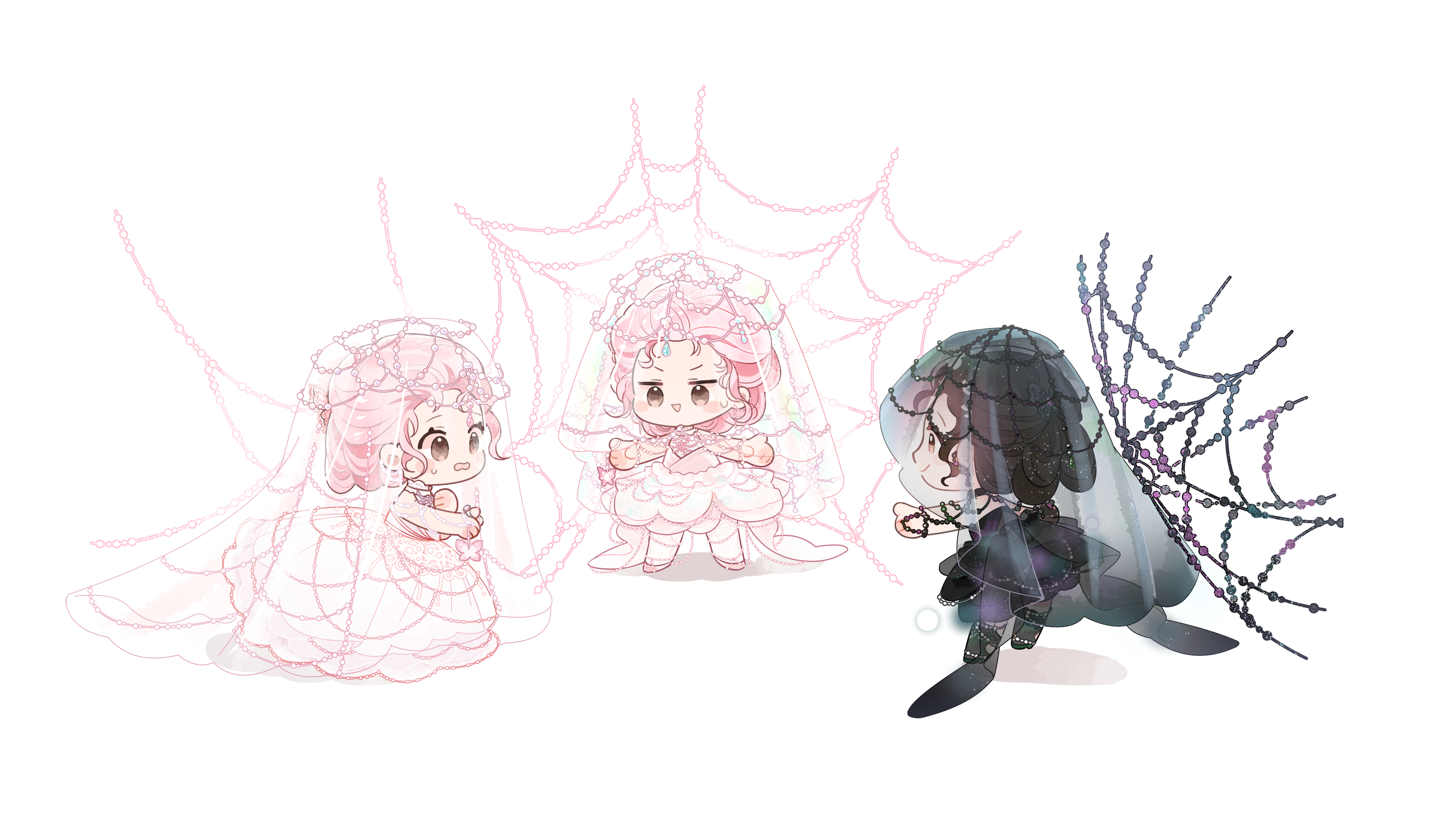3girlsbeadsblack dressblack hairblack shoesblack socksblack veilblush stickersbrown eyeschibicircletclosed mouthdressforeheadgownhalf updohand on own chestkneehighslightweaving kiss (shining nikki)medium dressmememultiple girlsmultiple personanecknervousnervous smileofficial alternate coloropen mouthpink dresspink hairpink shoespointingpointing at anotherpointing spider-man (meme)pointy nosesee-through clothessee-through veilshoesshort hairsilksimple backgroundsmilesocksspider webstraplessstrapless dressv-shaped eyebrowsveilwhite backgroundwhite sockswhite veil