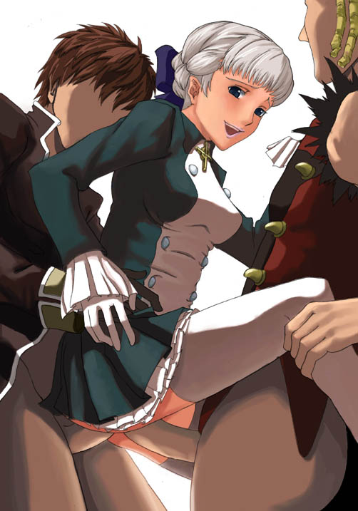 jo area, princess sara, jujika, juujika, lace-trimmed legwear, 1girl, blush, breasts, cameltoe, cleavage, covered erect nipples, dress, elbow gloves, female focus, garter belt, garter straps, gloves, green eyes, hair ornament, hairclip, headdress, jewelry, lace, lace trim, large breasts, lingerie, long hair, necklace, open mouth, panties, pantyshot, red hair, skirt, solo, standing, thighhighs, underwear, upskirt, white dress, white gloves, white panties, white skirt, white thighhighs, wind, wind lift