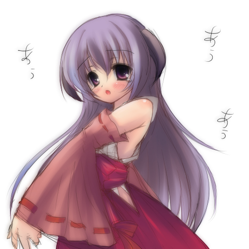 00s1girldetached sleevesfemale focushakamahakama skirthornsjapanese clothesmikopurple eyespurple hairred hakamaskirtsolotears