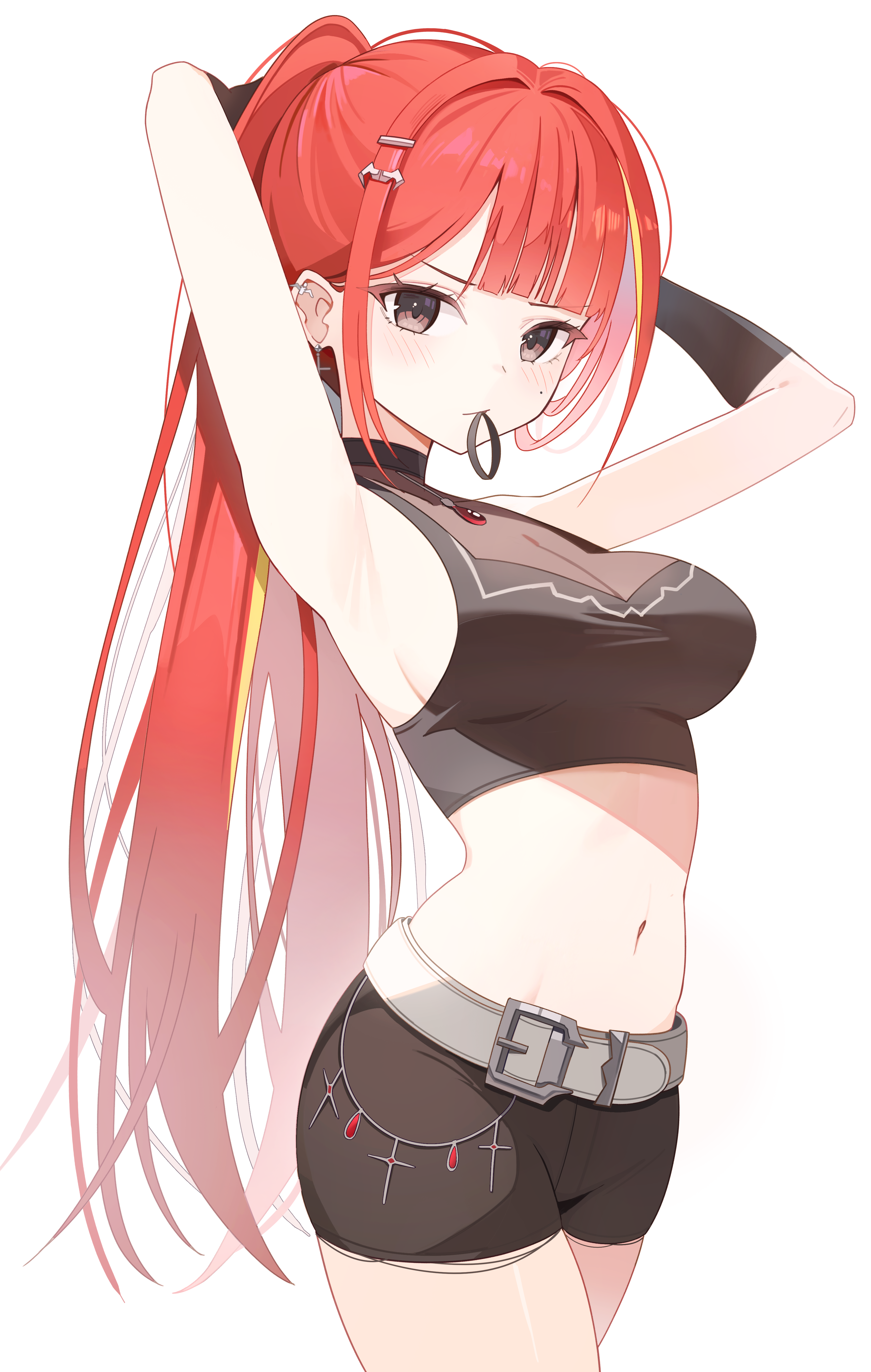 1boy1girlamuletarmpitsarms behind headarms upbeltblack glovesblonde streaksblunt bangsbreastsbrown eyesbrown pantsbrown shirtbrown shortscleavageclosed mouthcowboy shotcrop topcropped shirtear piercingearringsgloveshair ornamenthair tie in mouthhaircliphigh ponytailjewelrylight blushlong hairlooking at viewermedium breastsmidriffmolemole under eyemouth holdmulticolored hairnavelpantspiercingponytailred hairsee-through clothesshirtshort shortsshortssidelockssimple backgroundsleevelesssleeveless shirtsolostraight hairstreaked hairtying hairv-shaped eyebrowsvery long hairvirtual youtuberwhite backgroundwhite belt