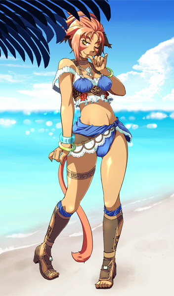 00s1girlanimal earsbeachbikiniblue bikinibreastscat earscat girlcat taildayfemale focusfull bodynatureone eye closedoutdoorsskysoloswimsuittailwink