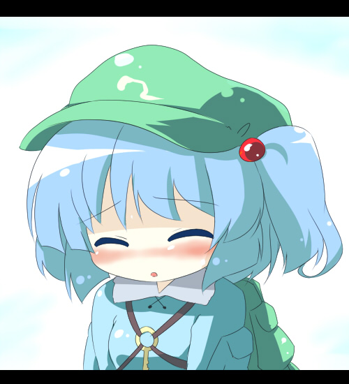 1girlbagblue hairblushclose-upclosed eyesfemale focushair bobbleshair ornamenthatletterboxedsolotwo side up