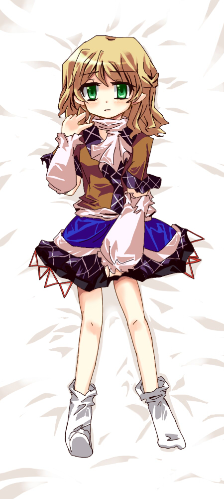 1girlbedblonde hairfemale focusfull bodygreen eyeslyingon backpointy earsshort hairsockssolowhite background