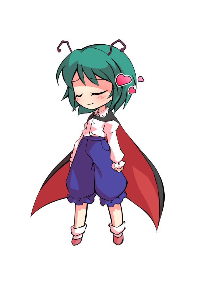 1girlantennaeblack capeblue pantsbrown shoescapechibichibi onlyfull bodygreen hairjuliet sleeveslong sleevespantspuffy sleevesred capeshirtshoesshort hairsockssolotachi-etransparent backgroundtwo-sided capetwo-sided fabricwhite shirtwhite socks