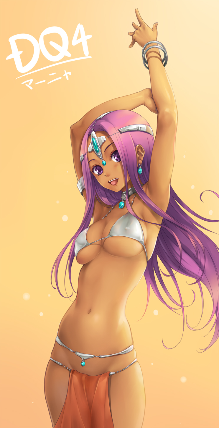 1girlarmbandarmletarmpitsarms upbanglebelly chainbikinibikini top onlybraceletchokercircletcollardancerdark skindark-skinned femaleearringsfemale focushatjewelryloinclothlong hairlots of jewelryno pantiespelvic curtainpurple eyespurple hairsoloswimsuitwhite bikini