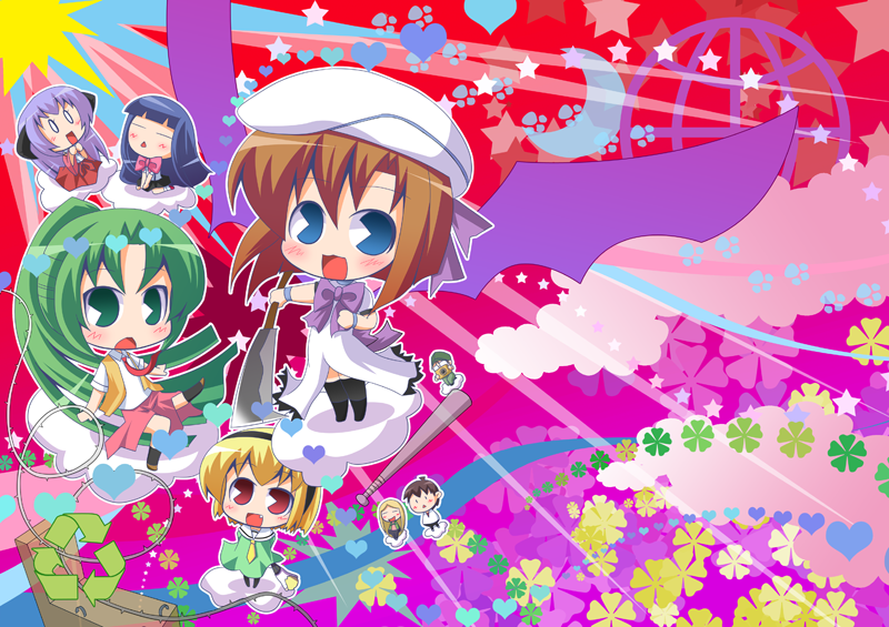 00s2boys6+girlsbaseball batblonde hairblue hairbrown hairchibicolorfuldressgreen hairhathearthornslong hairmultiple boysmultiple girlspac-man eyespurple hairribbonshort hairwings