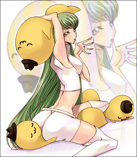 sugimura tomokazu, hiiragi kagami, lucky star, absurdres, highres, long image, tall image, 00s, 1girl, bed sheet, breasts, cleft of venus, female focus, full body, legs, lying, navel, nude, panties, panty pull, purple eyes, purple hair, pussy, pussy juice, pussy juice trail, solo, thigh gap, thighhighs, uncensored, underwear, wet, wet clothes, wet panties