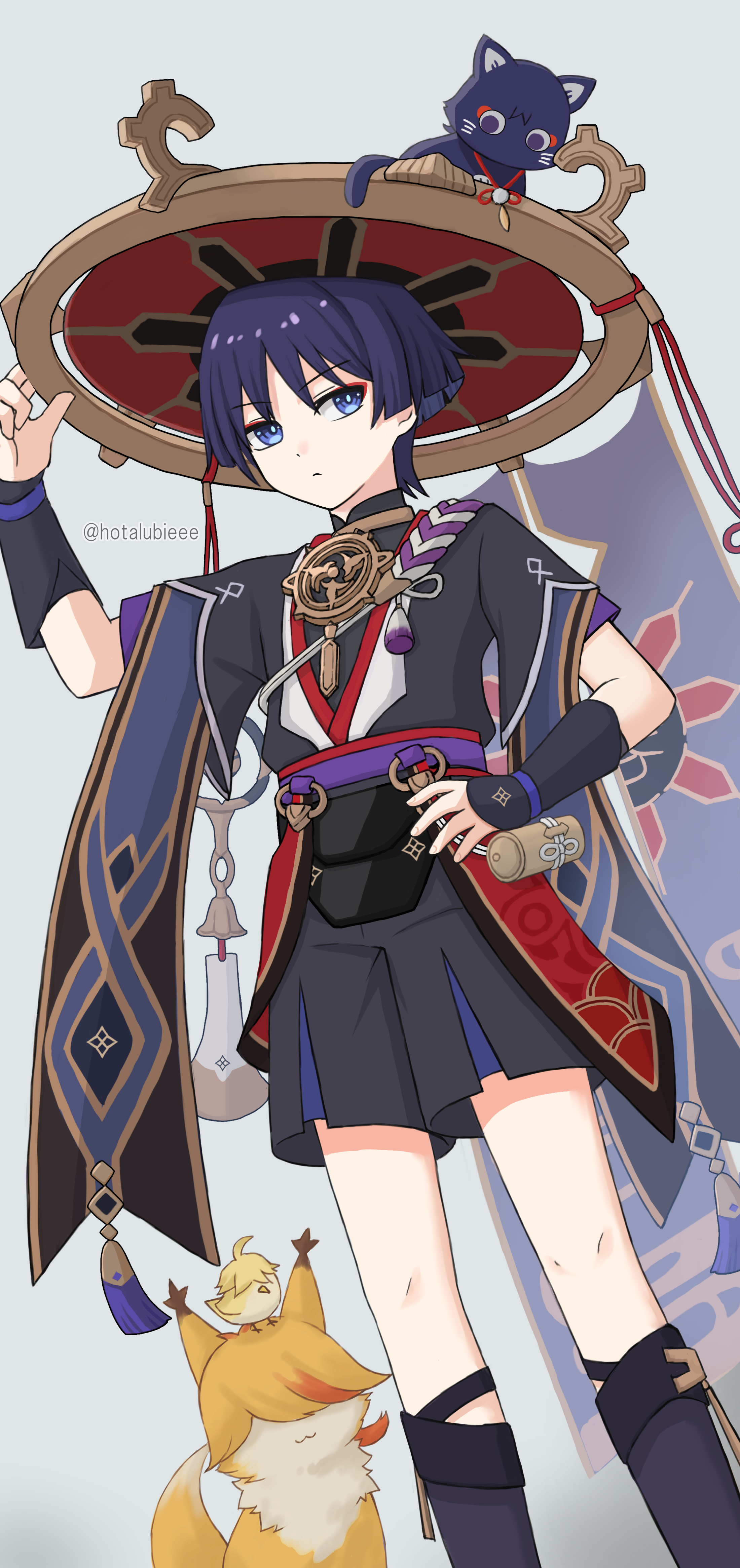 1boyanimalizationarm at sidearmorblack bodysuitblack catblack kimonoblack shortsblack sleevesblue shortsblunt endsbodysuitbright pupilscatclosed moutheyelinereyeshadowfeathersfurisodegoldgold trimgrey veilhand on own hiphand uphatjapanese armorjapanese clothesjewelryjingasajubankimonokotekurokotelayered shortslayered sleeveslooking at animallooking upmakeupmale focusmandarin collarmitsudomoe (shape)neck ringniwa (genshin impact)person and animalizationpom pom (clothes)purple eyespurple hairpurple ropepurple sashpurple sleevesred eyelinerred eyeshadowred hatred kimonored sashropesashshimenawashort sleevesshortsstringtasseltomoe (symbol)twitter usernameveilwhite backgroundwhite kimonowhite pupilswhite ropewhite trimwispy bangsyellow feathers