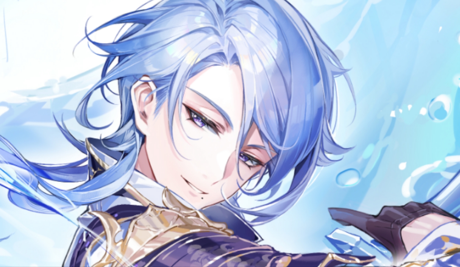 1boyarmorblack glovesblue hairgloveshair between eyeshalf glovesholdingholding swordholding weaponjapanese armorlong sleeveslooking at viewerlooking to the sidemale focusmedium hairmolemole under mouthparted lipsportraitpurple eyesshoulder armorsmilesodesoloswordwaterwater dropweaponwhite background