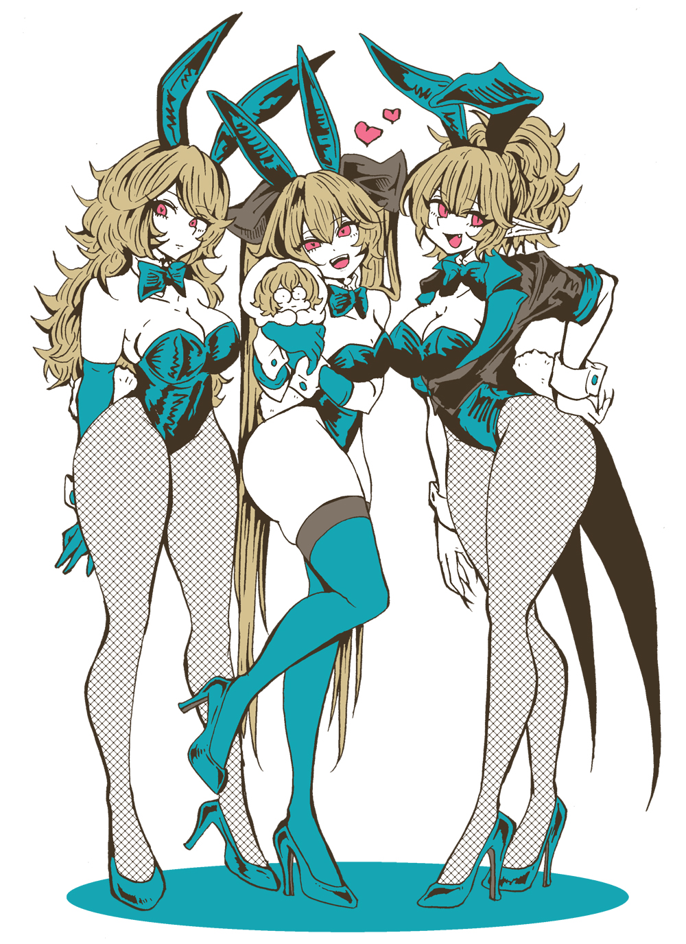 3girlsanimal ear hairbandanimal earsaqua glovesbare shouldersbowbowtiebreastscleavagedetached collarfake animal earsfake tailfishnet pantyhosefishnetsflat colorfull bodygloveshairbandhigh heelslarge breastsleotardlimited palettelong hairlooking at viewermultiple girlsopen mouthpantyhoseplayboy bunnyrabbit ear hairbandrabbit earsred eyessimple backgroundsmilespot colorstraplessstrapless leotardtailthighhighstraditional bowtievery long hairwhite backgroundwhite wrist cuffswrist cuffs