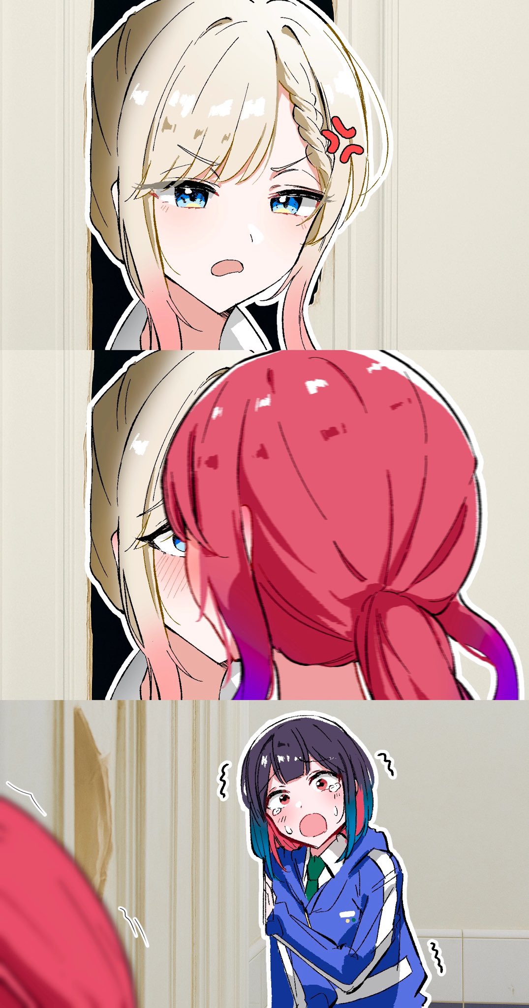 mario kaneda, koyomi hare nanaka, miharu sena kanaka, girls bravo, black legwear, absurdres, highres, scan, 00s, 2girls, ass, bed, bed sheet, blue background, blue bra, blue panties, bow, bow bra, bow panties, bra, breasts, cleavage, collarbone, dakimakura (medium), facial mark, forehead mark, hair ribbon, hip focus, large breasts, legs, lingerie, long hair, looking at viewer, lying, medium breasts, midriff, multiple girls, on back, on bed, on side, panties, pink bra, pink eyes, pink hair, pink panties, purple hair, ribbon, side-tie panties, thighhighs, toes, underwear, underwear only, untied panties