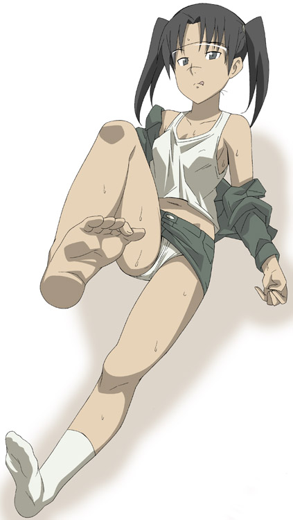 00s1girlbad anatomybad feetbarefootfeetfemale focusglassesjacketmidriffno shoespantiespoorly drawnskirtsolessolosweattoestwintailsunderwearwhite panties