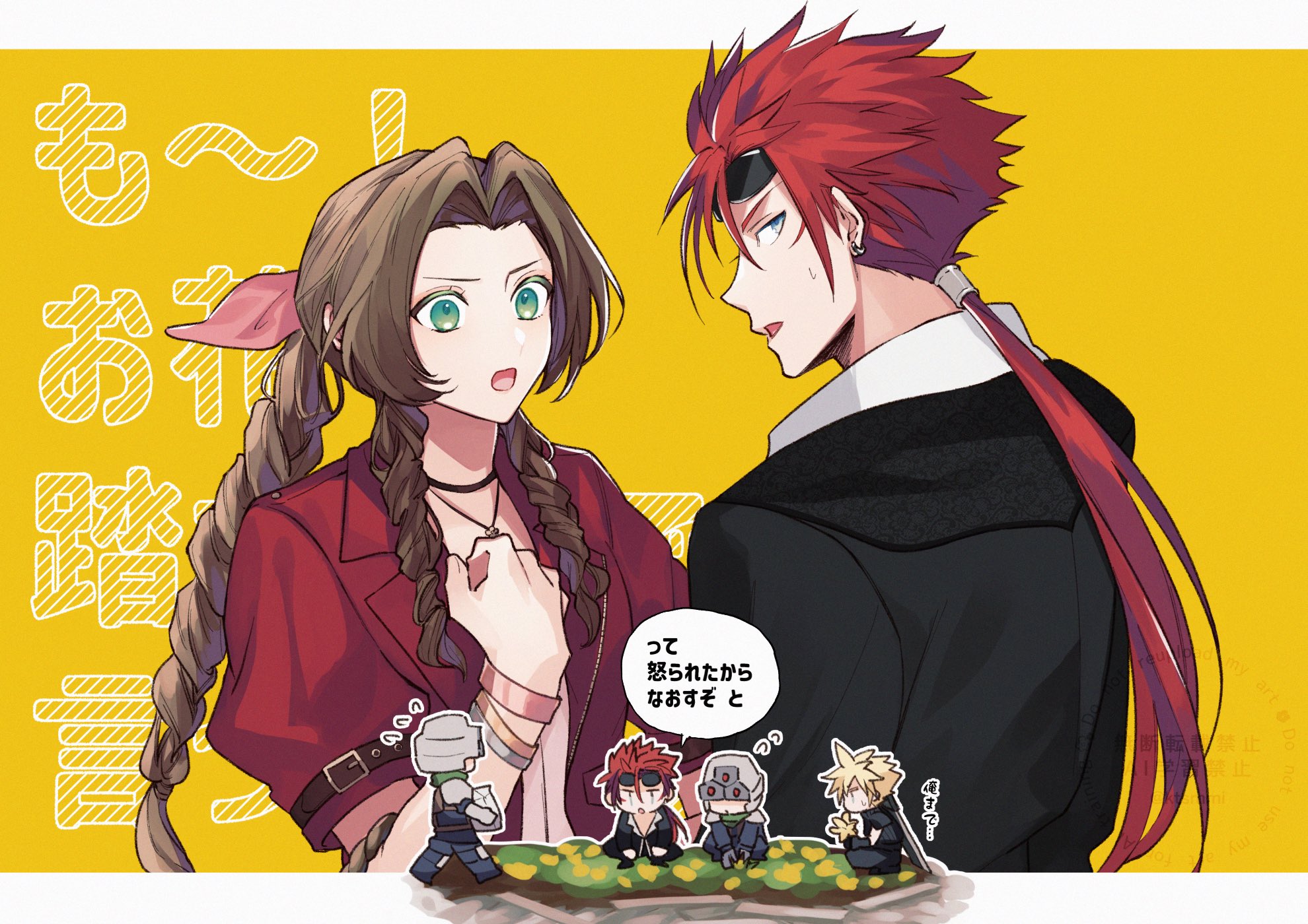 hinoue itaru, na-ga, kamikita komari, natsume rin, little busters!, absurdres, highres, 2girls, aqua eyes, blonde hair, bow, brown hair, long hair, multiple girls, pink bow, pocky, ponytail, red eyes, ribbon, short hair, very long hair