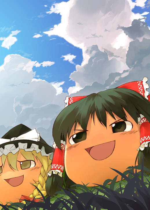 norippe (user zgsf8872), arona (blue archive), plana (blue archive), blue archive, commentary request, highres, 2girls, :d, bare arms, bare shoulders, bikini, black bikini, black hairband, blue eyes, blue hair, blue sky, blush, braid, closed mouth, cloud, collarbone, day, frilled bikini, frills, grey eyes, grey hair, groin, hair over one eye, hair ribbon, hairband, halo, innertube, long hair, multicolored hair, multiple girls, navel, open mouth, pink hair, ribbon, single braid, sky, smile, swim ring, swimsuit, two-tone hair, very long hair, water, white bikini, white hairband, white ribbon