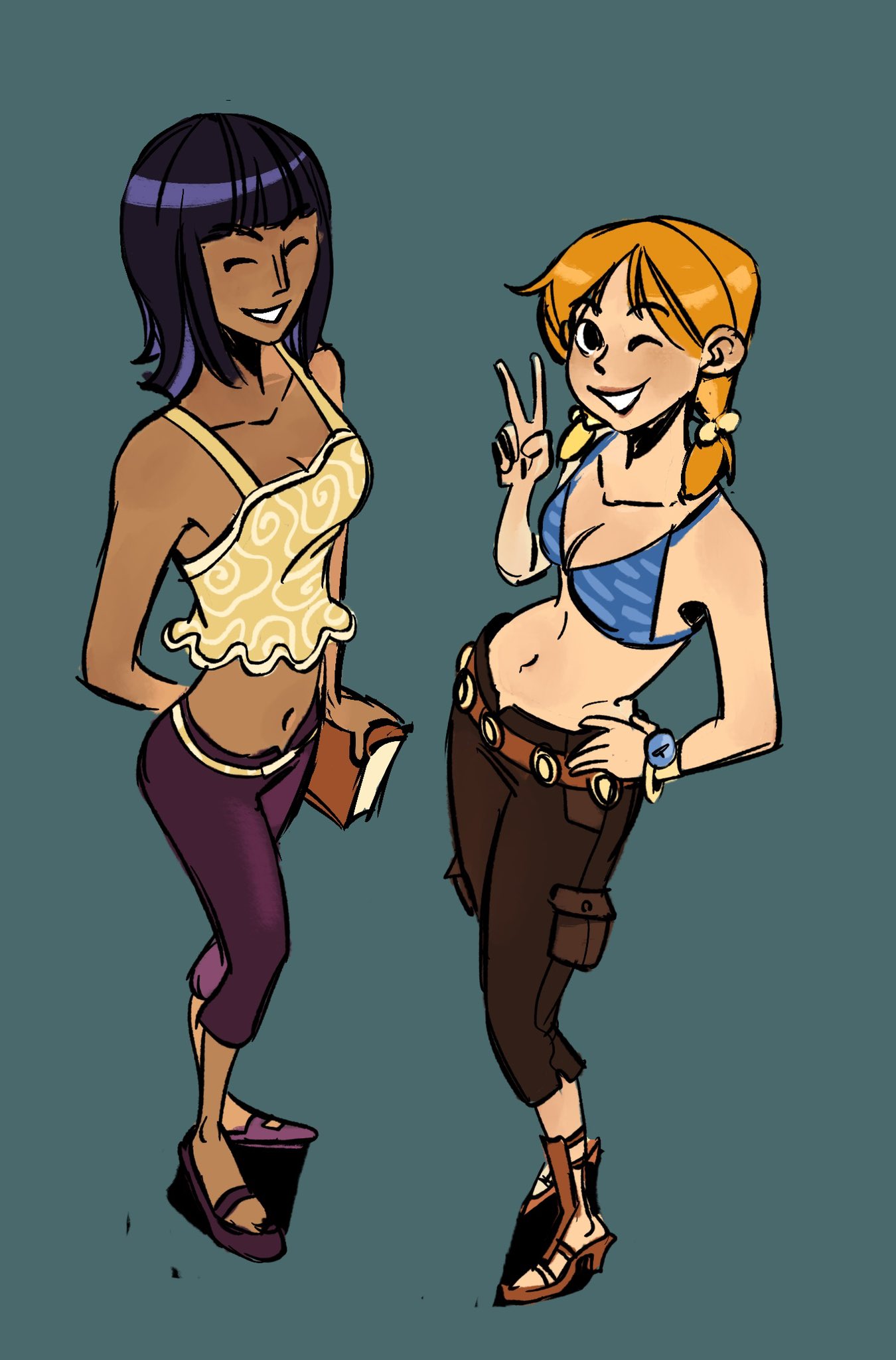 riokasen, yoshinaga koi, slow loop, absurdres, highres, 1girl, barefoot, full body, hands in pockets, purple eyes, short shorts, shorts, smile, solo, twintails, white background