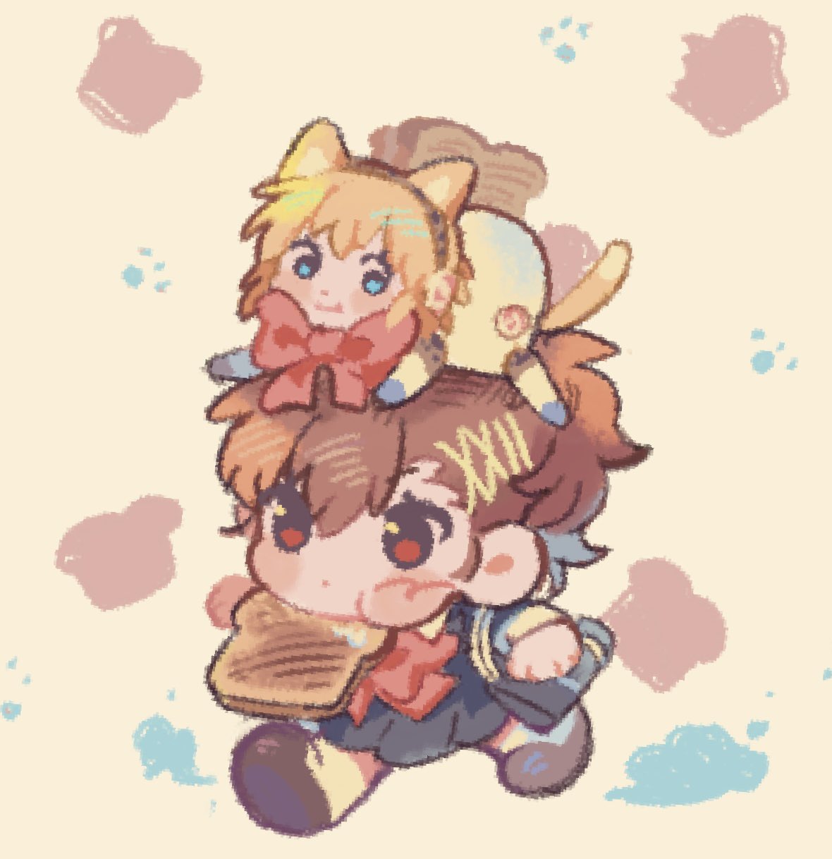 1girlanimalanimal on headanimalizationblack skirtblonde hairblue eyesbowbowtiebreadbread slicebrown haircatchibiclosed mouthfoodfood in mouthfull bodygekkoukan high school uniformhair ornamenthaircliplong sleeveslooking at anothermouth holdnon-humanoid roboton headred bowred bowtiered eyesrobotrobot animalschool uniformshort hairsimple backgroundskirttoasertoasttoast in mouthwalkingx hair ornamentxikq0pyyellow background
