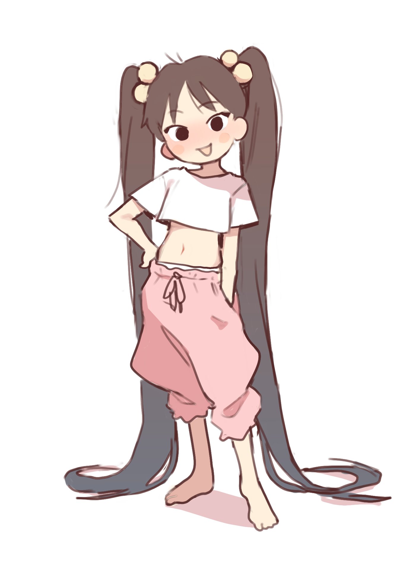 :d1girlblushbrown haircrop tophair bobbleshair ornamentlong hairnavelopen mouthsimple backgroundsmiletsurimevery long hairwhite background