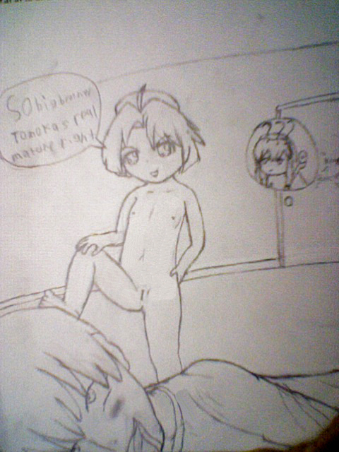 miito shido, original, 1girl, breasts, brown eyes, brown hair, female focus, nipples, panties, panty pull, solo, underwear