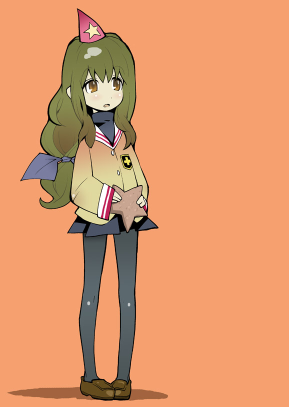 00s1girlbrown eyesbrown hairfemale focuslong hairpantyhoseschool uniformserafukusimple backgroundsolostarfish