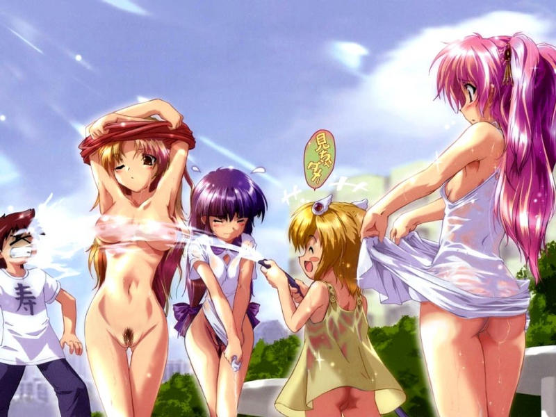 midori no ruupe, original, bad id, bad pixiv id, 1girl, blue eyes, blue hair, censored, cloud, convenient censoring, day, female focus, from below, long hair, matching hair/eyes, navel, nude, parted lips, sky, solo, very long hair