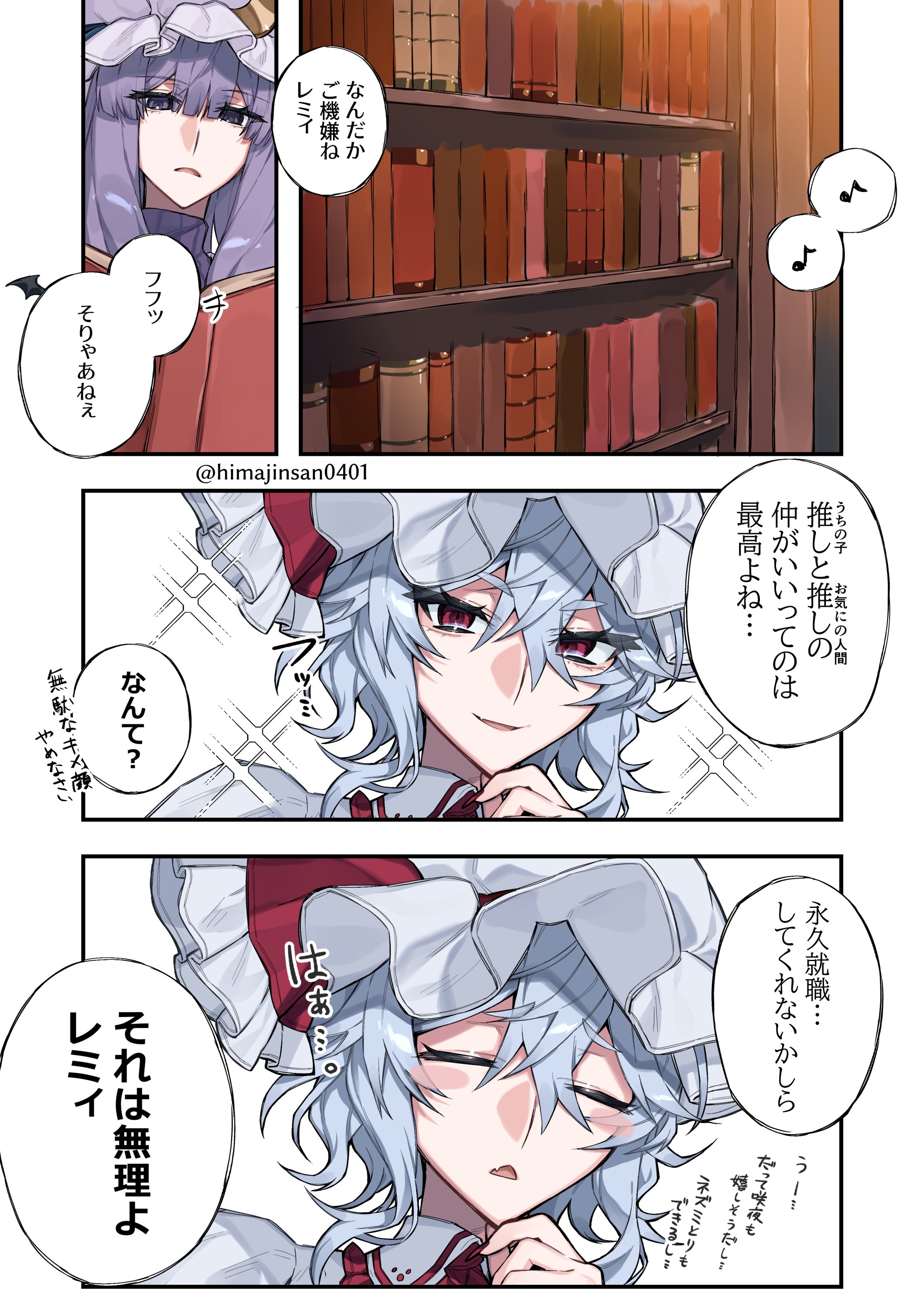karaagetarou, cirno, komeiji satori, touhou, translated, 2girls, 4koma, :<, :3, blue hair, bow, chibi, comic, hair bow, mind rape, multiple girls, o o, purple hair, recursion, short hair, tears, wings