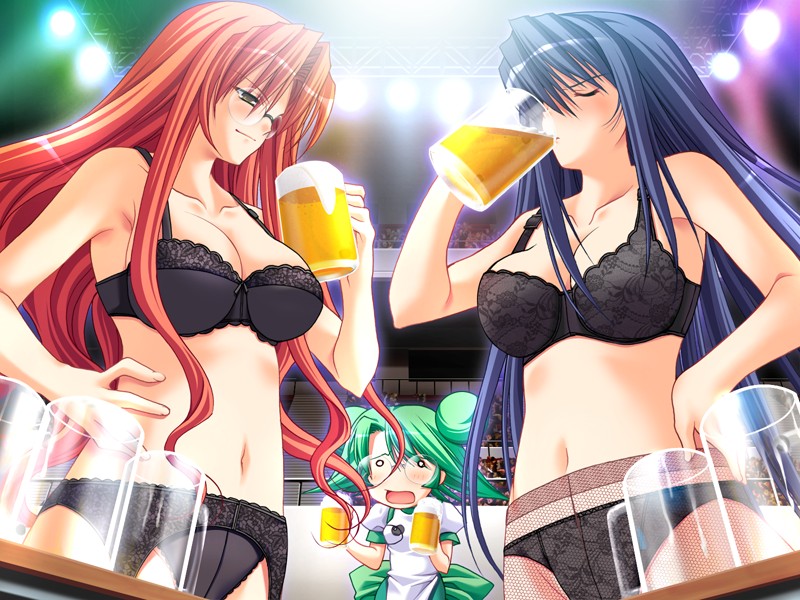 3girlsalcoholbeerblack pantiesblue hairbraclosed eyescrotch seamfishnet pantyhosefishnetsfrothglassesgreen hairlacelace trimlace-trimmed pantieslingerielong hairmultiple girlspantiespanties under pantyhosepantyhosered hairthighhighsunderwearunderwear only