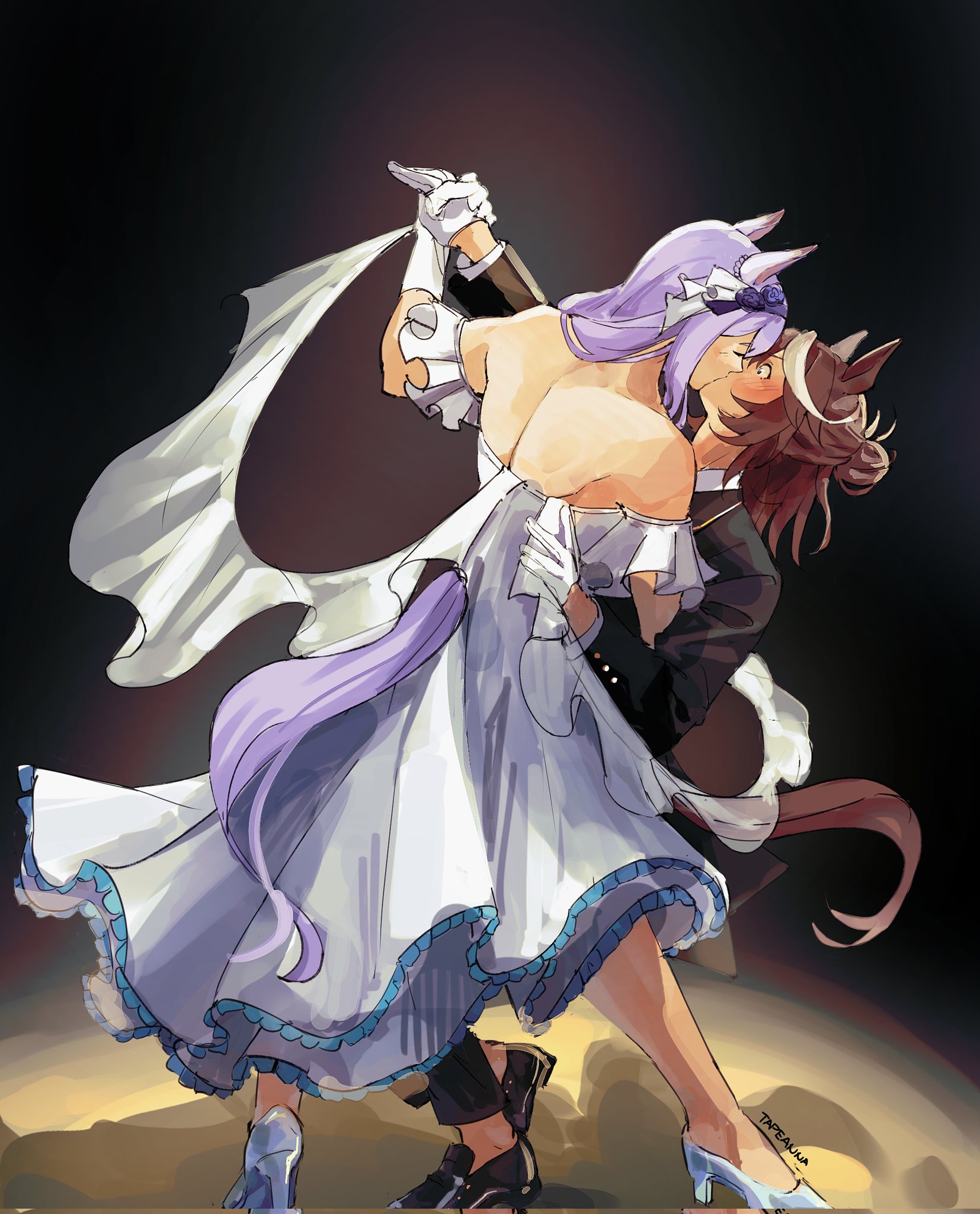 sketchinventor, gunsmith bitch (psg), panty & stocking with garterbelt, absurdres, highres, backpack, bag, braces, coke-bottle glasses, dark-skinned female, dark skin, dolphin shorts, fanny pack, glasses, gradient hair, green hair, legs, multicolored hair, shoes, shorts, smile, sneakers, socks, tank top, v, white socks
