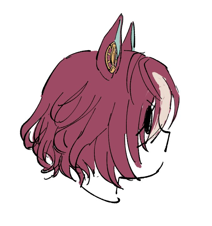 1girlanimal earsbrown hairchibieyepatchfrom sidehead onlyhorse earsmulticolored hairprofilesimple backgroundsolotwo-tone hairwhite backgroundwhite hair