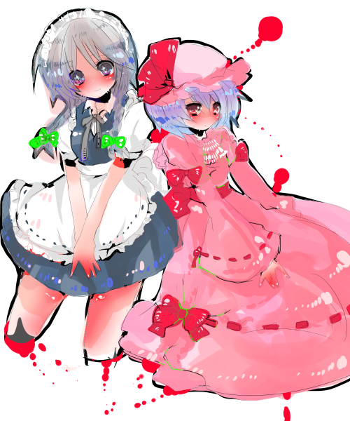 2girlsblue hairbraidfemale focushair ribbonhatmaidmultiple girlsribbonshort hairwhite background