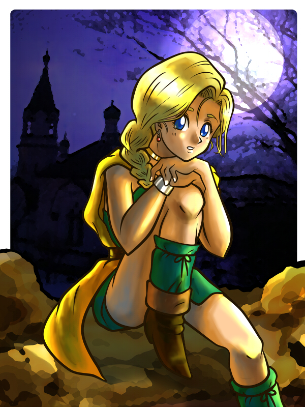 1girlblonde hairblue eyesbootsbraidcapefemale focushair over shoulderhead restlong hairmoonnightsingle braidsolo