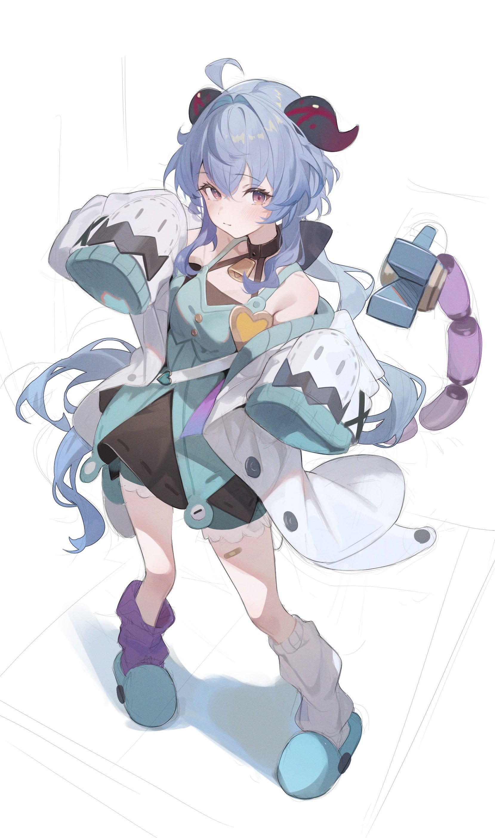 dairi, ibaraki douji (touhou), touhou, commentary request, highres, large variant set, variant set, 1girl, alphes (style), black shoes, breasts, cuffs, flower, full body, horns, long hair, long skirt, medium breasts, parody, pink flower, pink hair, pink horns, pink rose, rose, shackles, shirt, shoes, skirt, solo, standing, style parody, tabard, tachi-e, transparent background, white shirt, white skirt
