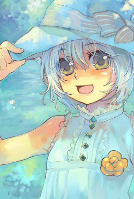 takahata yuki, bushidou (sekaiju), bushidou 1 (sekaiju), curse maker, curse maker 2, doctor magus, doctor magus 2, gunner (sekaiju), gunner 2 (sekaiju), jack frost (megami tensei), magus (chrono trigger), pet (sekaiju), pet 1 (sekaiju), atlus, etrian odyssey, highres, 1boy, 3girls, :d, blonde hair, blue eyes, creature, day, jitome, long hair, long sleeves, looking at viewer, multiple girls, open mouth, outdoors, plant, pom pom (clothes), profile, samurai, shade, shaded face, smile, sunlight, text focus, tree, very long hair, witch