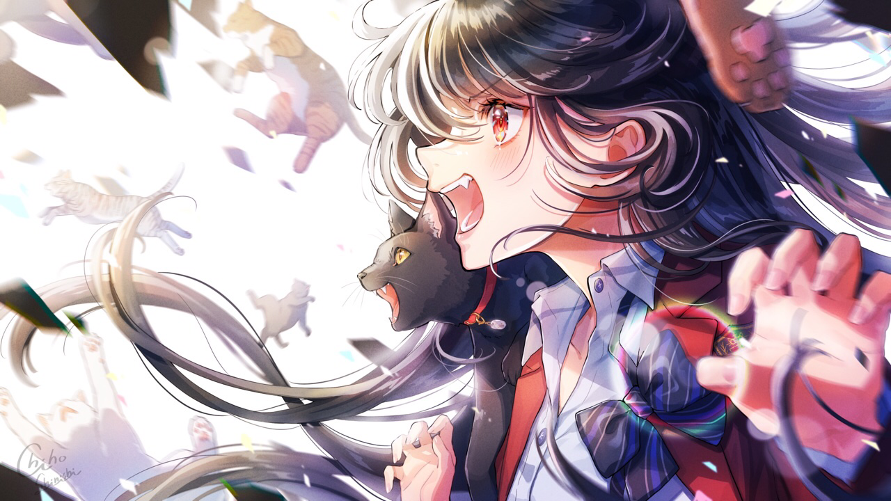 :d1girlartist nameblack bowblack bowtieblack hairblushbowbowtiecatcollared shirtfrom sidejacketlong hairlong sleevesopen clothesopen jacketopen mouthprofilered eyesred jacketshirtsmilesolostriped bowstriped bowtiestriped clothesupper bodyv-shaped eyebrowswhite shirt