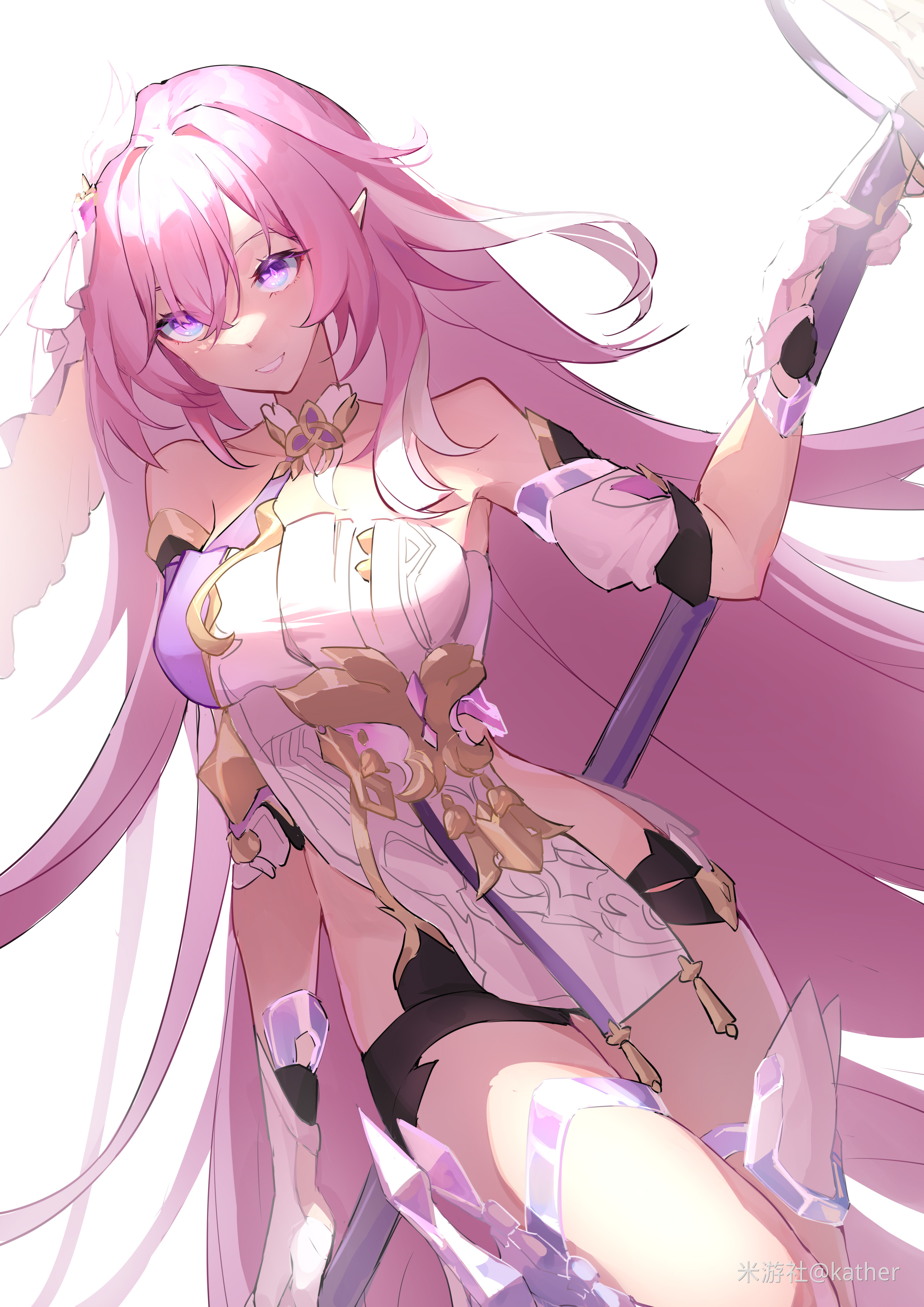 1girlbare shouldersblack shortsbreastsclothing cutoutcorsetdiamond (shape)diamond-shaped pupilsholdingholding stafflarge breastslong hairmicro shortsmiyoushe watermarkparted lipspink hairpurple eyesshortsside cutoutsimple backgroundsmilesolostaffsymbol-shaped pupilsthighstriquetraveilvery long hairwatermarkwhite backgroundwhite corsetwhite veil