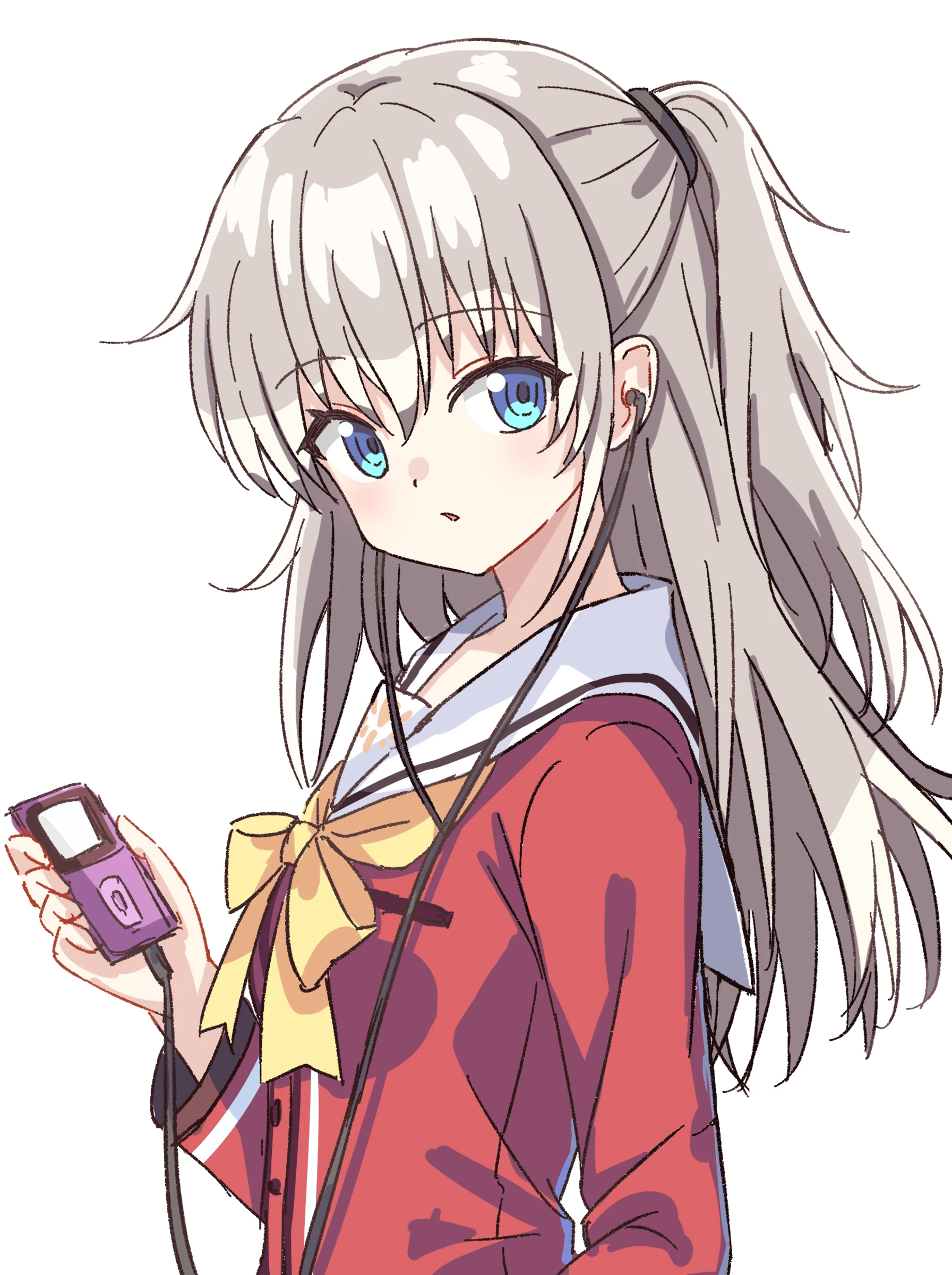 summer pockets, character request, highres, official art, 1girl, bare arms, bare shoulders, blue eyes, closed mouth, collarbone, copyright name, day, dot nose, flat chest, headpat, long hair, one eye closed, pov, pov hands, sleeveless, solo focus, window